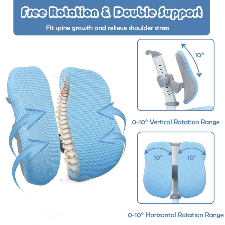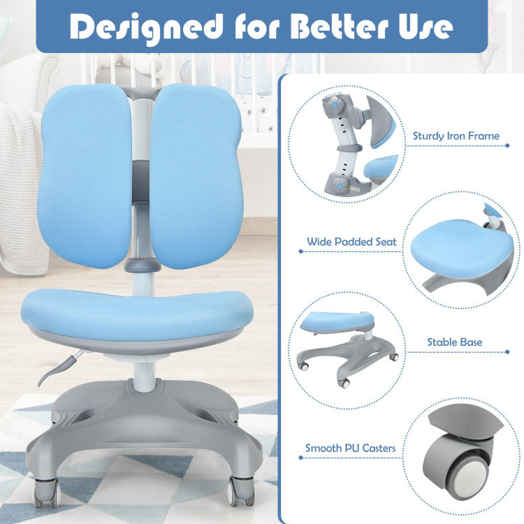 This kids study chair is characterized by humanized and ergonomic design. Seat height and depth are adjustable to accommodate people of different heights, as well as backrest height. A foam-padded cushion can relieve the pressure of long-time sitting. Besides, it is constructed with solid iron pipe and durable PP material for long-time use, which supports users up to 330lbs. Owing to its self-locking casters, it is great for kids to focus on their activities while sitting on the chair, and is also safer and more steady. As a good partner to accompany children's growth, this kids' study chair can be widely used in kids' rooms, living rooms, schools, and more.