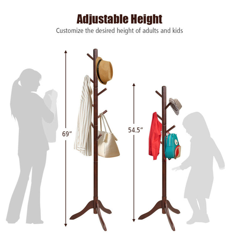 And the tri-legged base provides good stability. With 8 staggered hooks, it will help you keep your clothes, scarves, bags and other items organized instead of being a mess. The coat stand is equipped with 4 independent and adjustable sections to install freely according to your desired height. And it is easy to put them together without tools. It can not only bring convenience to your daily life, but also add beauty to your room. It is perfect for both home and office.