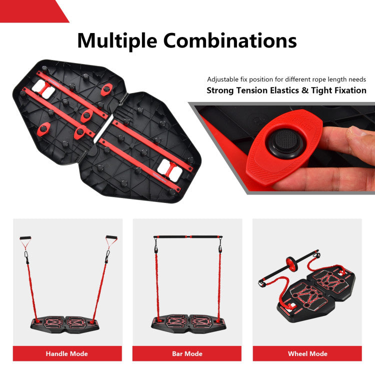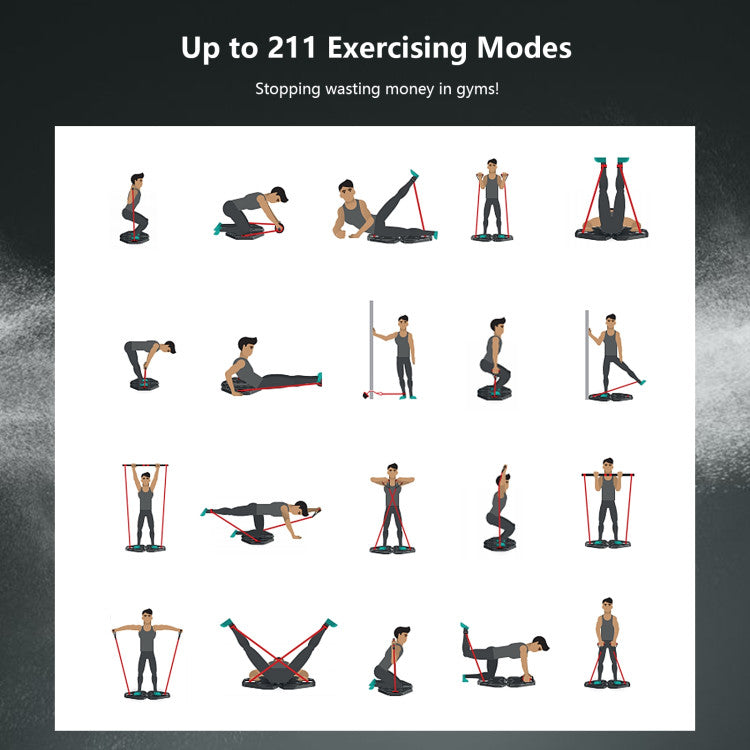 This fitness training equipment provides 211 kinds of workout options to make your whole body get full exercise and strengthen, including the shoulder, arm, back, chest, abdomen, hip, leg, etc. Strong tension elastics and changeable fixed positions allow you to regulate the difficulty of each exercise. With the carrying bag and foldable base, you can enjoy fitness with our portable home gym anywhere and anytime. As for quality, made of premium ABS material in rugged construction, this workout equipment supports long-lasting use and can hold weights up to 265 lbs.