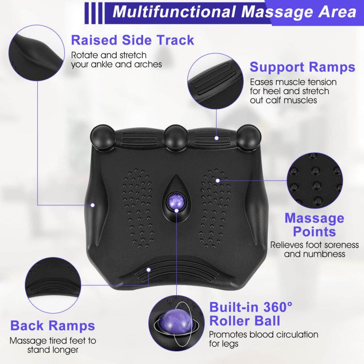 Designed with a 360° rolling massage ball, foot massage points, front support ramps and side raised tracks, this anti-fatigue standing mat supports different standing postures and offers multiple massages to effectively relieve fatigue, enhances blood circulation, and reduces stiffness. Thus, this ergonomic not-flat floor mat is perfect for people who stand or sit for long periods of time, like office workers, receptionists, chefs, etc. Made of high resilience and wear-resistant PU and SBR, this comfort floor mat ensures excellent stability, durability and can offer you all-around comfort. Besides, the anti-skid base provides steady support during long-time standing while the waterproof and stain-resistant surface is easy to clean. You can put this anti-fatigue mat under your standing desk, work table or next to your kitchen work table to enjoy a comfortable foot massage.