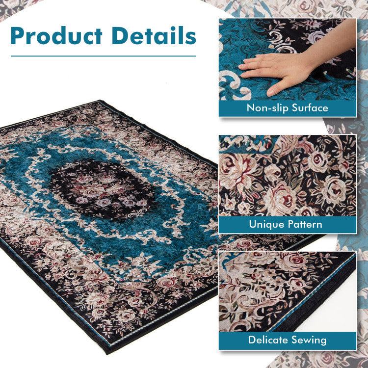 Pretty color scheme and gorgeous pattern can attract your attention at first sight. The soft surface offers the utmost comfort when you touch it. A non-slip base made of non-woven fabric prevents accidents from slipping, adding more security. Besides, its materials are also anti-static, flame-retardant, wear-resistant and tear-resistant, which ensures high durability. Moreover, its thickness is 0.2", which fits different floor spaces. You can put this rug in the living room, bedroom, dining room and office. Furthermore, the non-shedding area rug is also super easy to maintain and clean.