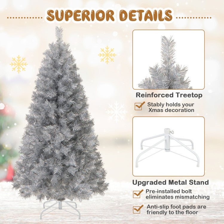 -Adopts silver tinsel leaves, add a touch of sophistication and elegance