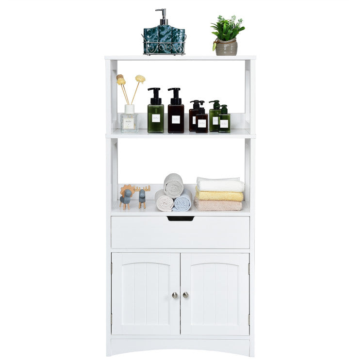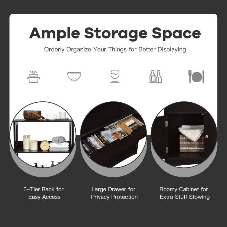 -The large storage space with shelves, drawer, and enclosed cabinet keeps everything in order