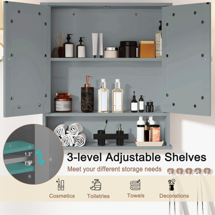 -Comes with a mirror on both doors for your everyday makeup