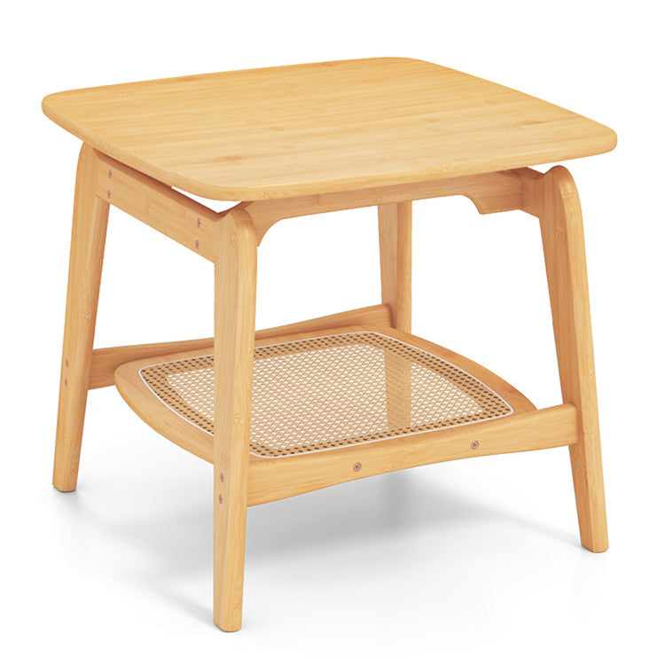 -Brings a touch of sophistication with its woven faux rattan shelf