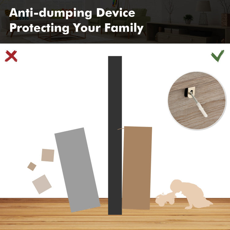 -5 Thickened legs ensure sturdy as well as stable structure Anti-Tip metal accessories support buffet sideboard firmly