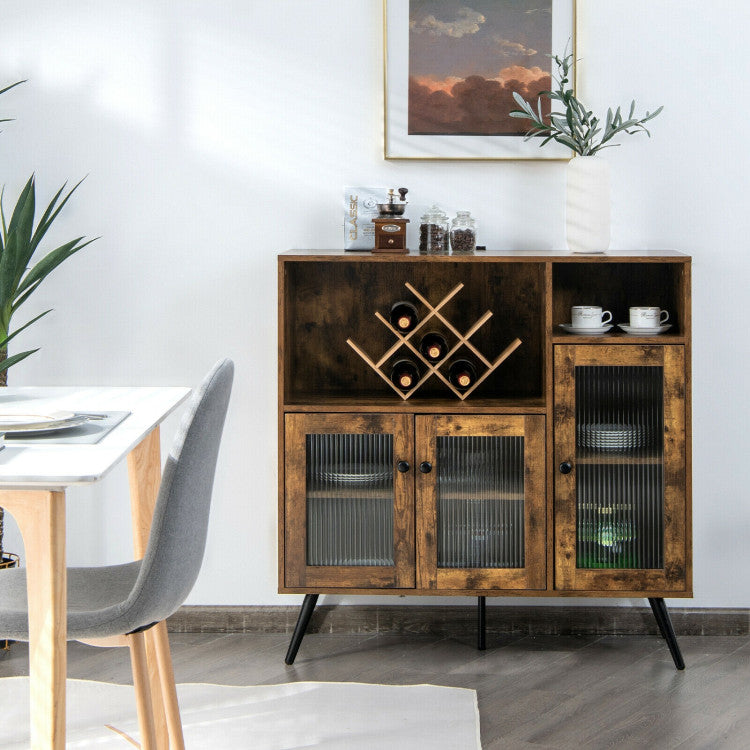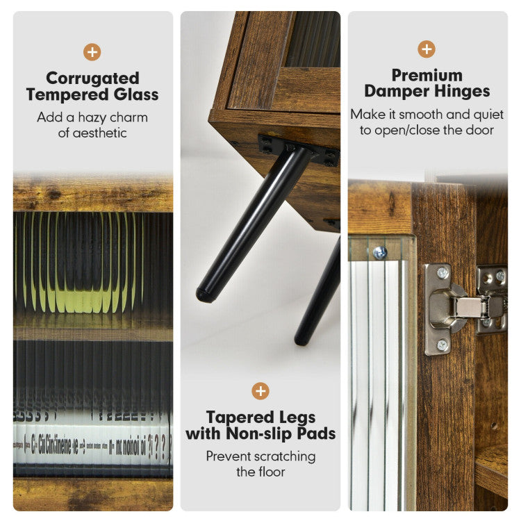 The open and enclosed space is ideal for storage or display. Besides, there are adjustable shelves that allow you to design the space according to specific needs. In addition to the storage function, the appearance of the sideboard is also worth mentioning as an eye-catching feature. The rustic wood grain all over enhances the charm of industrial style, the corrugated tempered glass adds a hazy aesthetic, and the black tapered legs are a good counter to the mid-century style. What is more, the buffet cabinet is also stable and durable. Not only does the 5-leg base provide solid support, but the anti-toppling device ensure safe use. Meanwhile, the legs raise the cabinet from the floor by 7 inches, leaving enough space for cleaning.