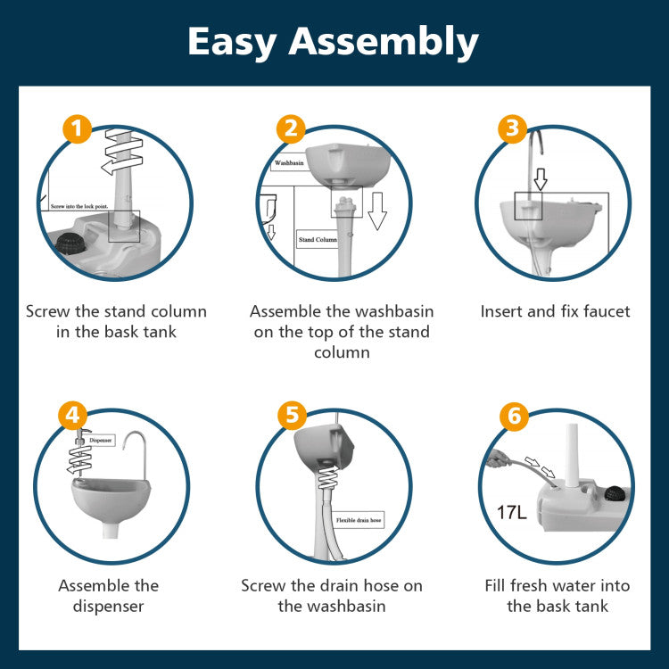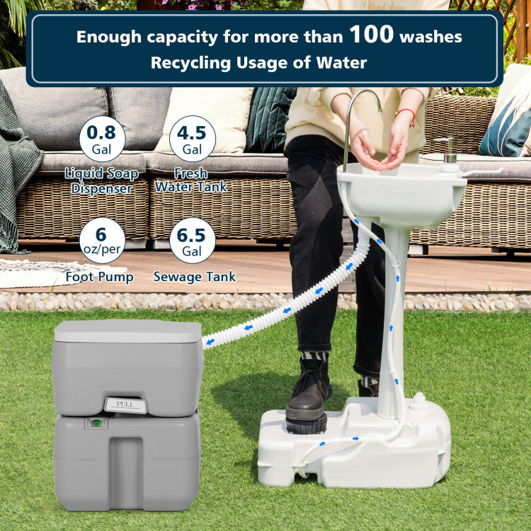 -Used independently or cooperated with portable toilet or extra water tank.