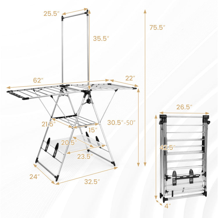 -Flexible rotation shafts make it easy to open and fold the drying rack