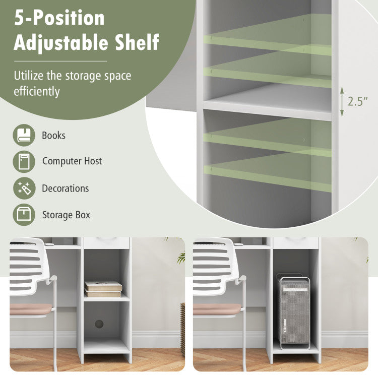 -Extra tabletop shelf and drawer suit storage needs