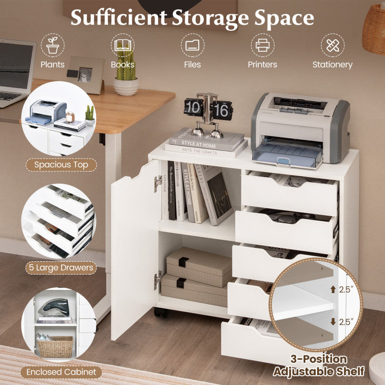 -5 drawers and 1 side cabinet to store books, snacks, office supplies, etc
