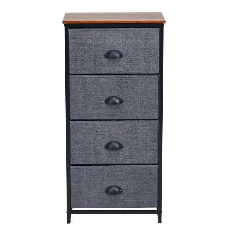 Made of sturdy and durable steel frame and thick medium density fiberboard , this drawer storage unit is solid enough to serve a long time. This chest of drawer comes with 4 folding fabric bins, which provides plenty storage space for you. It can be used in a variety of situations, whether it's a bedroom, living room, office, dorm or even a closet, you can place it for storage. Even, you can use it as a coffee table.