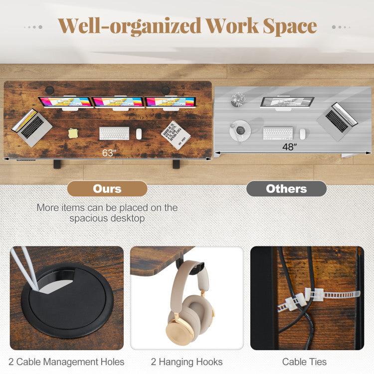 Overall Dimensions: 63” x 24” x 28”-46”/160 x 60 x 71.5-116.5 cm(L x W x H)