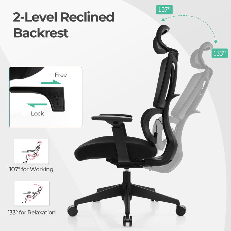 -With 2-level reclined backrest, 107° for working & 133° for relaxation