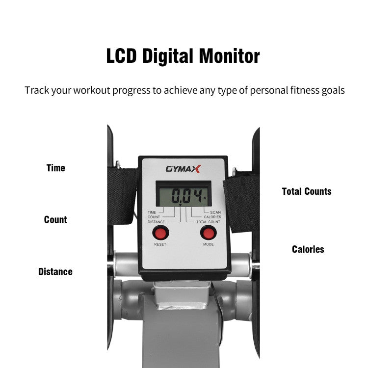 -LCD monitor tracks your count per min, time, count, calories, distance and scan