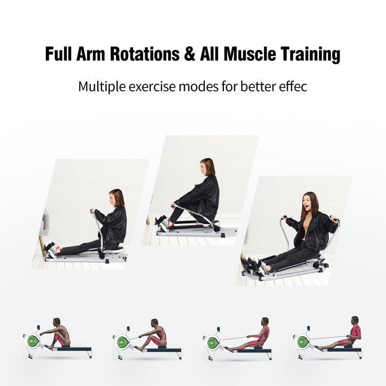 -Up to 110 lbs double adjustable hydraulic cylinder resistance create a versatile home rowing workout