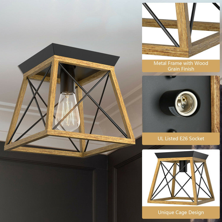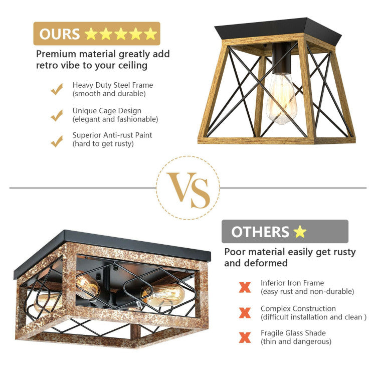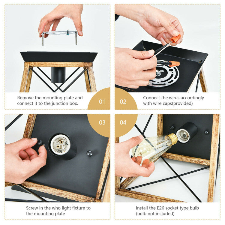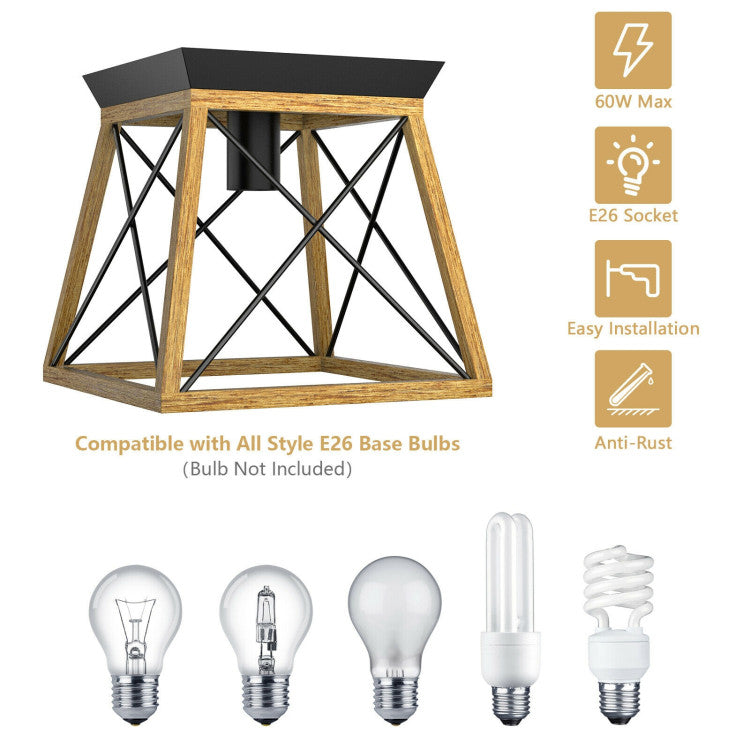 This lamp is made up of a premium iron frame, which is strong enough to last a long time. In addition, the blend of black and wood grain colors on the exterior gives it a retro yet refined look that will complement any interior application, including living room, dining room, bedroom, kitchen, hallway, basement and more. Moreover, open design increases light transmittance to ensure a high-quality light source. What's more, it works with Edison bulbs, incandescent bulbs, LEDs, CFL bulbs and compatible dimmer switches to provide flexibility.