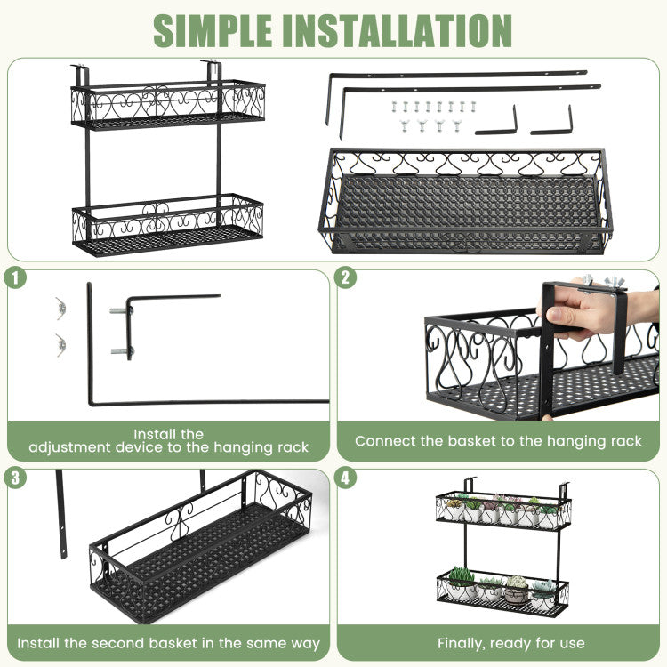 -Adjustable hooks to match railings of different widths
