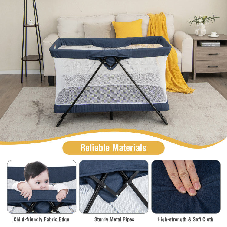 -Serves as a crib, playpen and baby bed for sleeping, playing, etc.