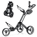 The golf carts are built with a super strong, lightweight, and sturdy aluminum frame that makes the golf pull cart easily maneuverable. Wide body design and big 10.5inch rear wheels and 9.5inch front wheels adds extra balance to the cart and effortless pushing. Simply tap the brake with your foot to engage the brake, then tap with your foot again to release the brake. No need to worry about that the cart will lose control. The handle and umbrella holder of this golf push cart is both adjustable to satisfy different needs of users. The foldable golf cart also has the net storage bag to place golf equipment. It is the best helper for golf game.