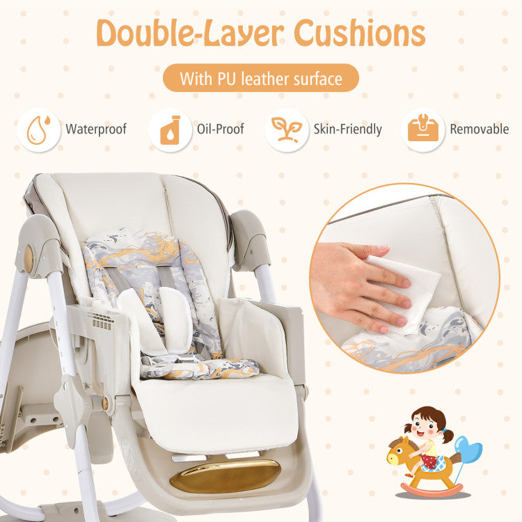 -Cleaning up is a breeze with the dishwasher-safe removable tray and the smooth, waterproof PU seat that can be easily wiped clean.