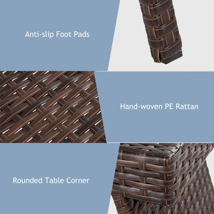 Their contemporary design and ergonomic comfort are exactly the right combination for your outdoor living space. With the feature of folding, this rattan coffee table is portable and convenient to storage when do not using. Wide table top providing enough space for holding your bottles, cups, magazines and other item. The air permeability of rattan table is good, it feels very cool, perfect for hot summer.