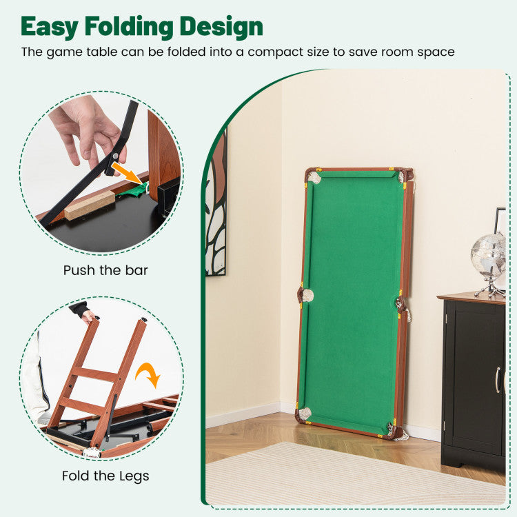-Complete set includes cue sticks, chalks, brush, billiard balls, and triangle