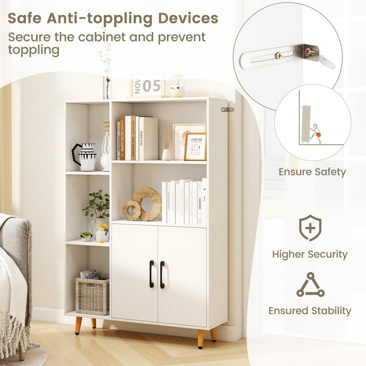 -5 open compartments and 2-door cabinet offer practical storage solution