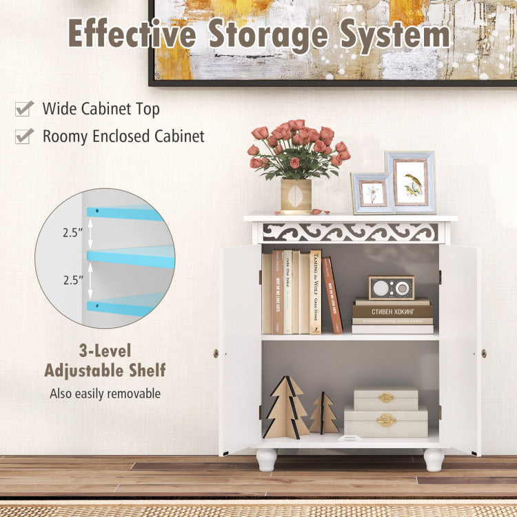-Roomy enclosed cabinet with a 3-level adjustable shelf