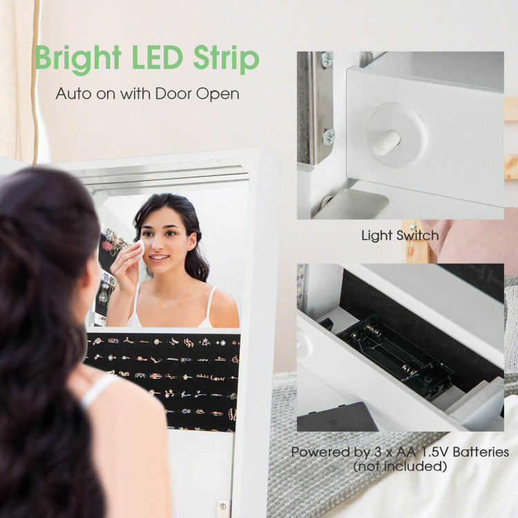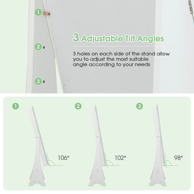-Features 2 HD mirrors: full length mirror and inside makeup mirror