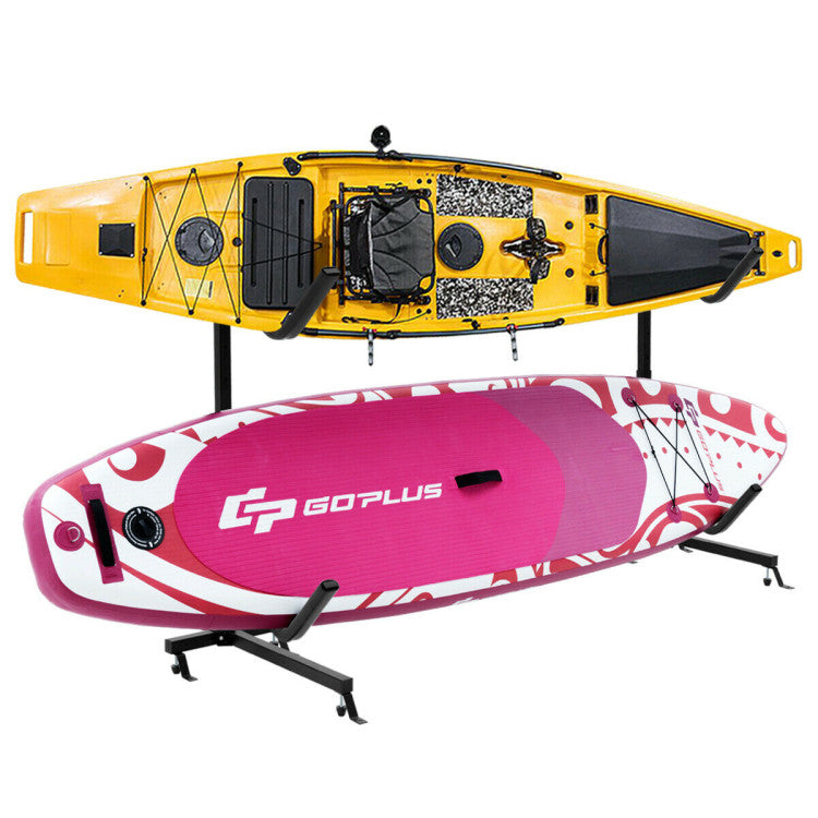 -2 removable hooks holding up to 2 kayaks, 6 adjustable heights to meet needs of different sizes kayaks