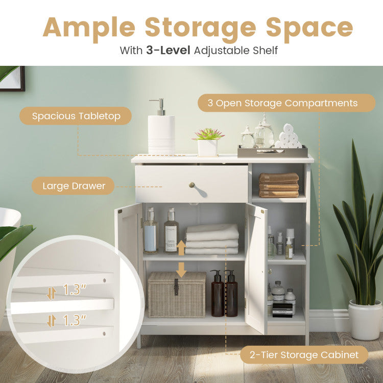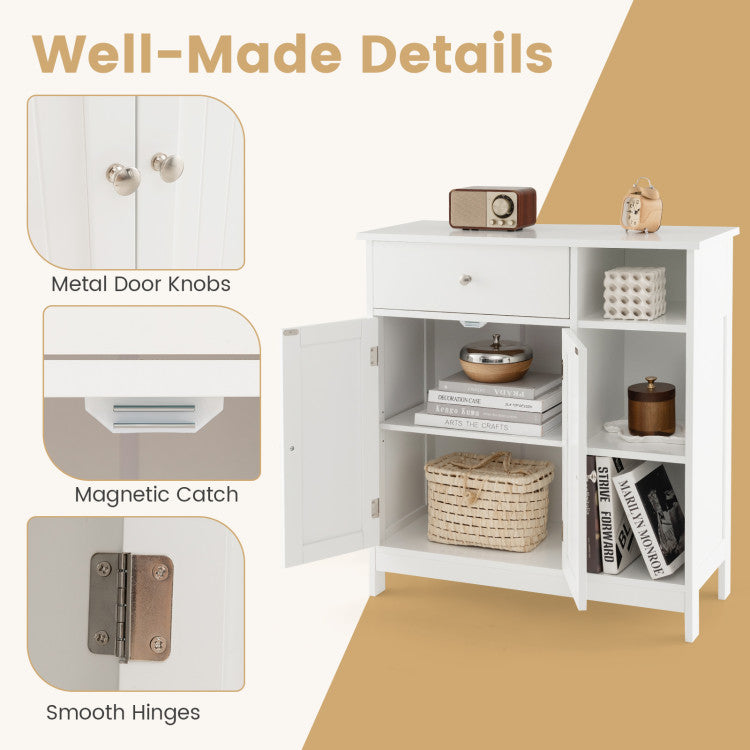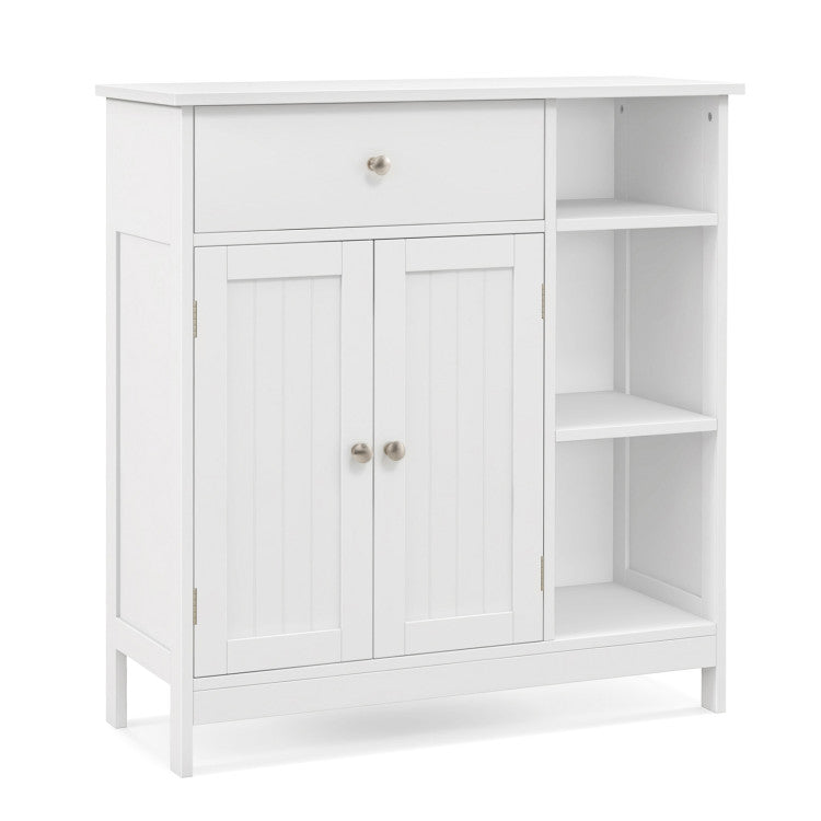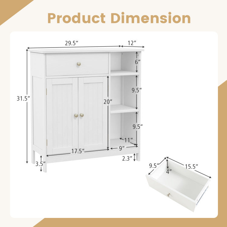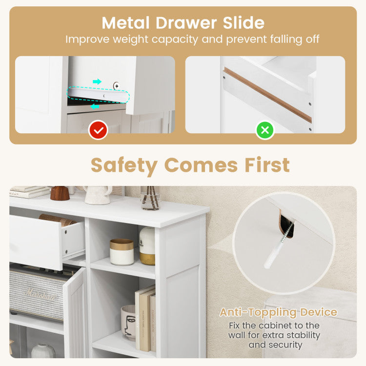 -Large storage capacity with a drawer, a cabinet and 3 open compartments