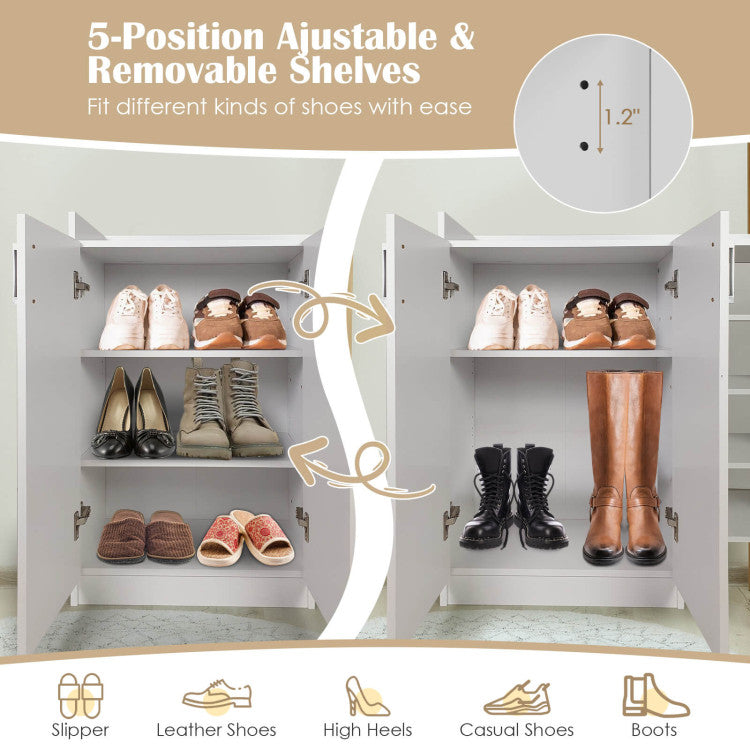 -2-door cabinet and 5 open compartments keep your shoes orderly