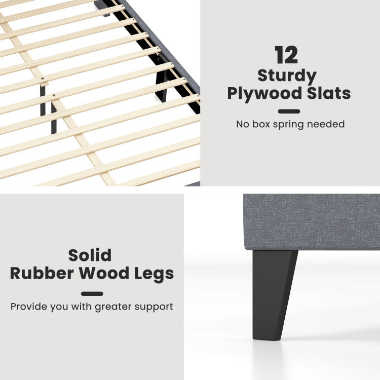 -Wingback headboard is covered with breathable fabric for extra comfort