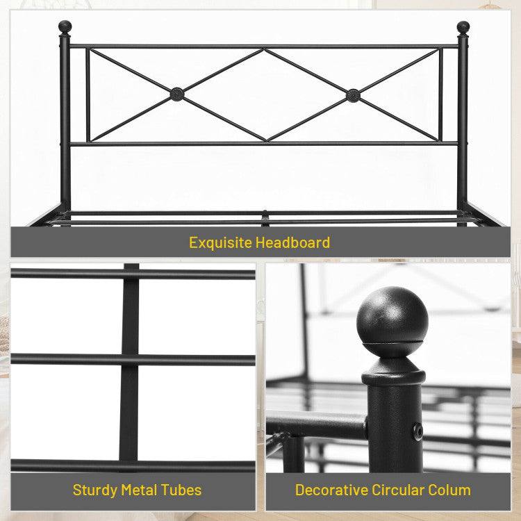 Constructed of heavy-duty metal slats, the bed base ensures a rugged and durable structure for long-term use. The reinforced support legs and solid screws also improve the stability of the bed frame. The under-bed space is spacious enough for you to store items, capable of catering to different storage needs. The exquisite headboard and footboard add a touch of elegance to your home, making it suitable for various room styles.