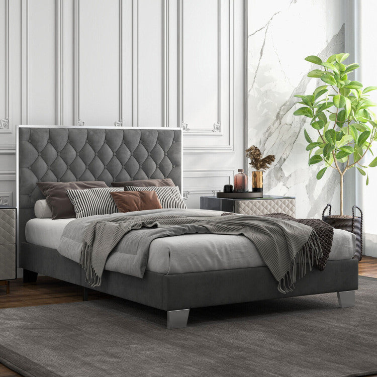 -Unique button tufted headboard highlights the bed frame