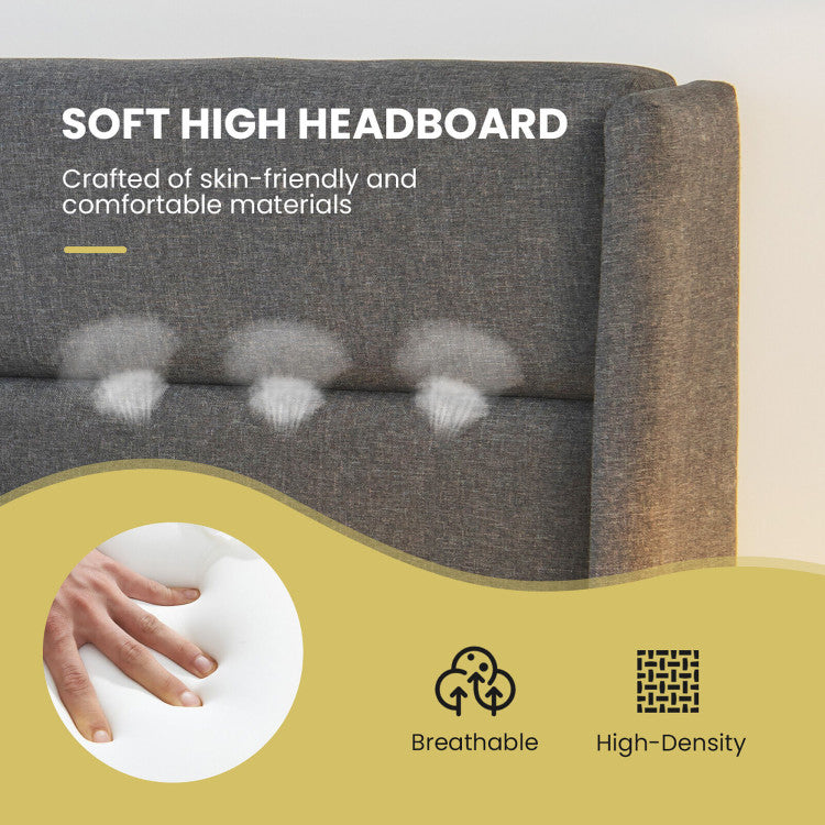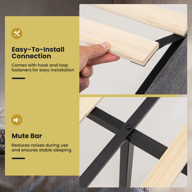 The whole frame is made of rustproof steel for a strong load capacity of 660 lbs. And it is covered with linen fabric and filled with sponge for very soft touch. During sleeping, its mute bar will highly reduce frictions and noises. The anti-slip legs and adjustable pads ensure a stable structure without wobbling. What’s more, the end storage ottoman is a perfect addition to accommodate your clothes, bed sheets, toys and more. Its side pockets can store your preferred magazines. With a fabric handle and supportive springs, the opening is very convenient. Plus, a 6.5" under-bed clearance is also perfect for sundry storage and easy sweeping. Thanks to a platform design, there is no need for a box spring.
