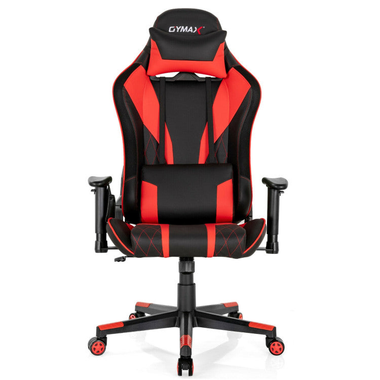 The dynamic LED light effect can create a more exciting game atmosphere and a remote control is included to let you conveniently adjust the lighting modes and colors. Supported by a heavy-duty 5-claw base and a solid gas rod, this gaming chair ensures great stability and strong load capacity of up to 330 lbs. The ergonomic backrest, adjustable lumbar support, soft sponge padded cushion and removable headrest can give you a super comfy sitting experience. And you can easily adjust the seat height, armrests and backrest to find an ideal position for gaming, working, napping, etc. With 5 smooth rolling casters, you can move the chair from room to room easily and quietly. Besides, the smooth and waterproof PVC leather surface is easy to clean with wet cloth.