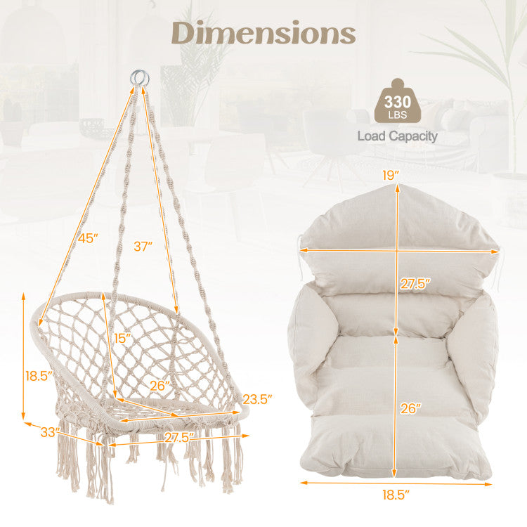 | Dimensions of Hanging Chair | 27.5” x 33” x 18.5” (L x W x H) |