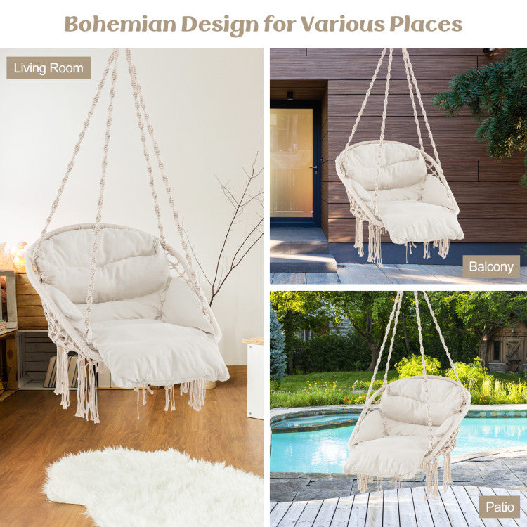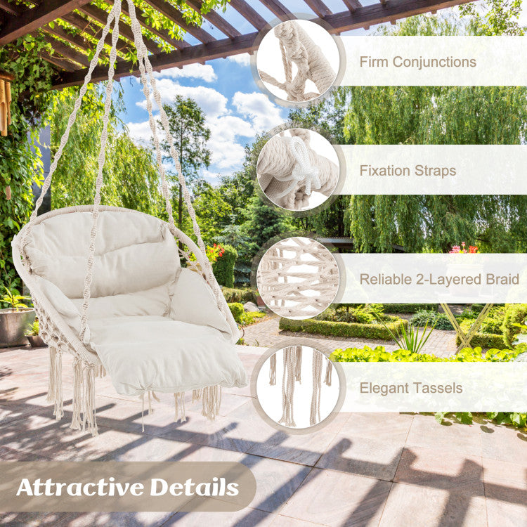 -Fixed by spiral 6-strand hanging ropes that are hand-woven and durable
