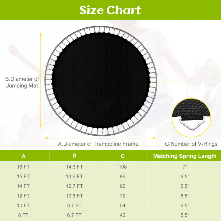 | Compatible trampoline frame | 8ft/10ft/12ft/14ft/15/16ft |