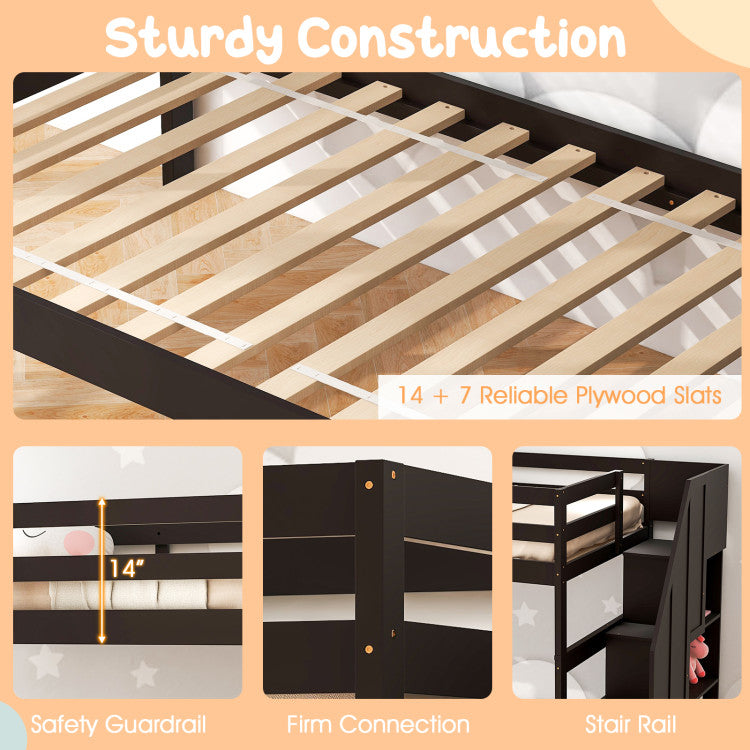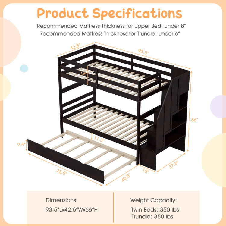 -Space-saving design with a twin upper bed, lower twin bed, and additional trundle bed