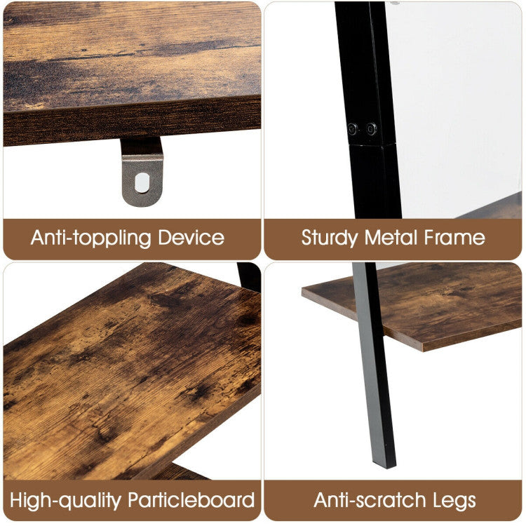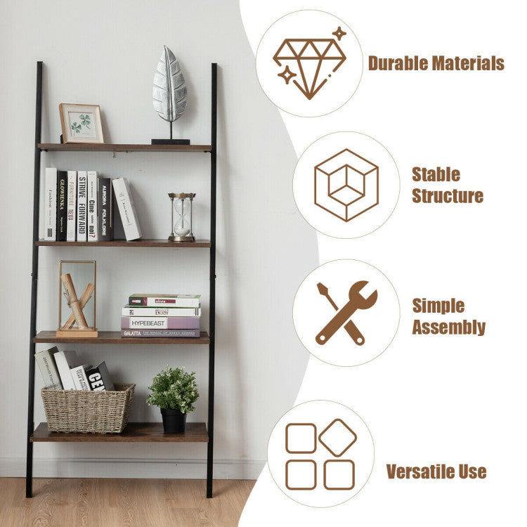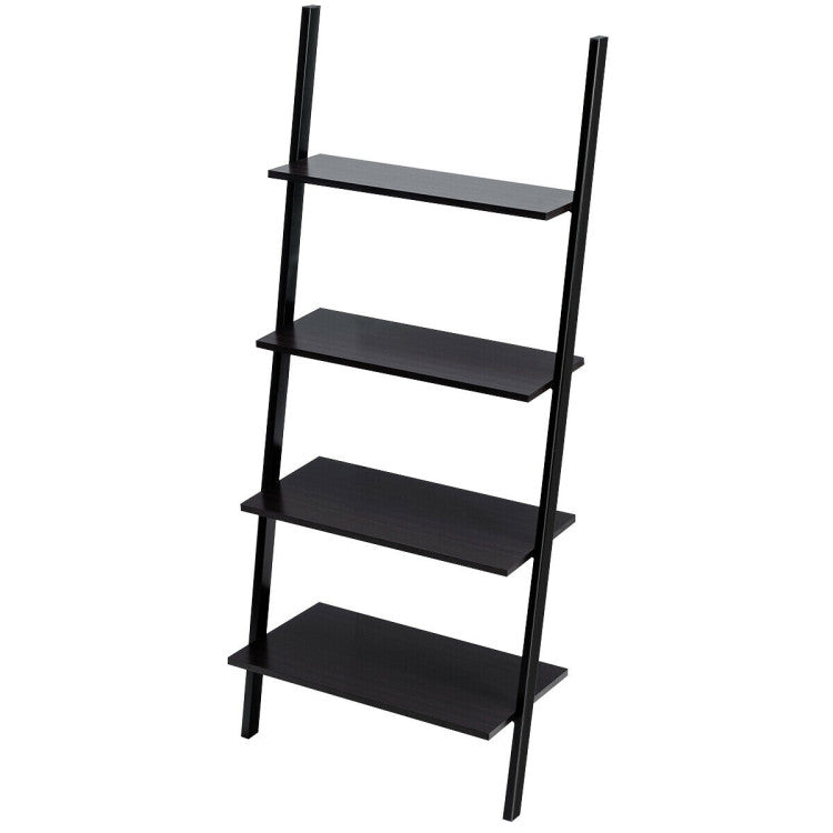 Made of high-quality particleboard, each shelf can support items strongly without worrying about easy bending and breaking. The powder-coated metal frame is sturdy and not easy to rust, providing a longer service life. While the ladder shelf shows a leaning appearance, actually all shelf layers lean against the wall at a 90° angle in order to reach maximum stability. Featuring four open shelves, this storage rack is convenient for storing books, potted plants, flowers, or kitchen supplies in an orderly manner.