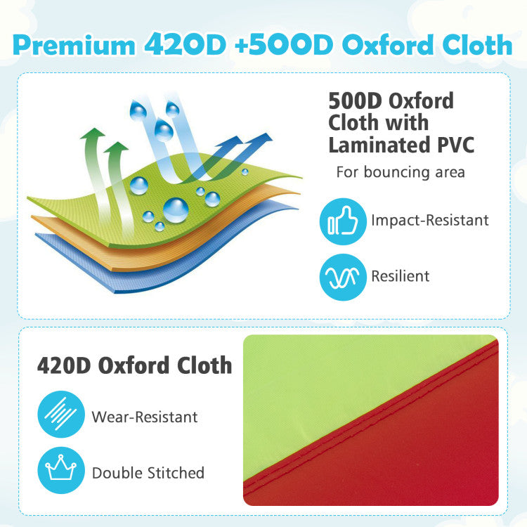 -Wide slide, jumping area and basketball hoop enhance sports entertainment
