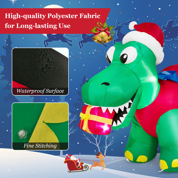 -Realistic dinosaur, Christmas hat and gift box diffuse festival atmosphere