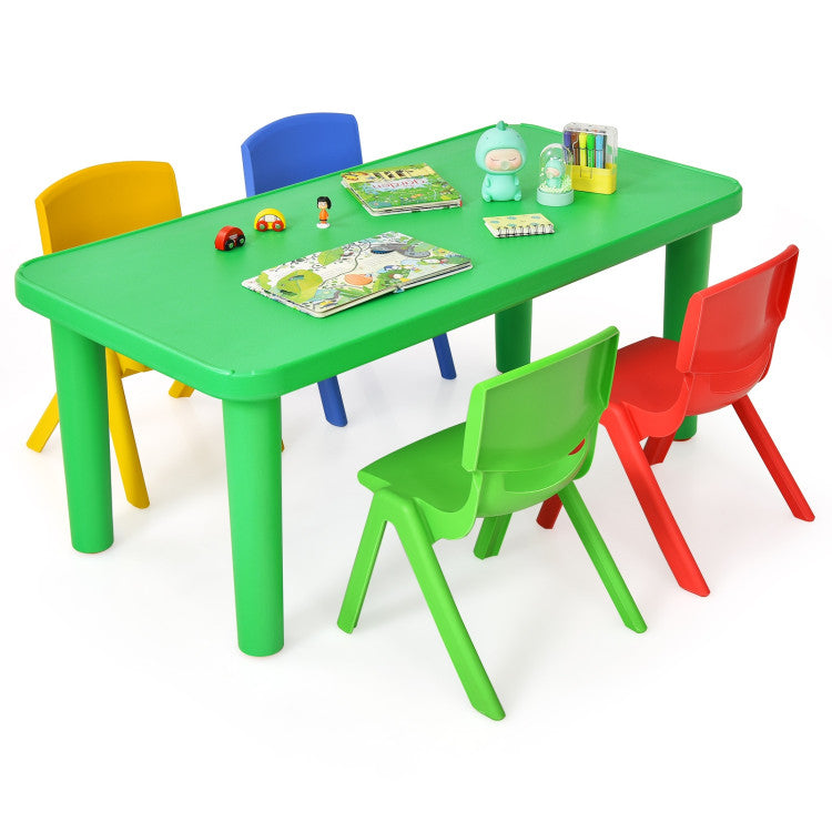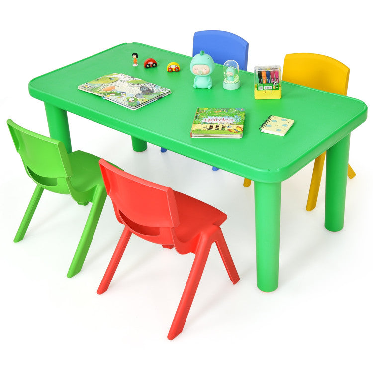 This plastic table and 4 chair set is a great choice for your kids to eat learn and play.