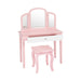 The vanity set has been tested from EPA and the paint we choose is lead-free and has no peculiar smell. Comes with a tri-folding mirror, your little one can adjust the angle of mirror conveniently to get much light and make up better. The dresser also has a drawer to help store small items such as hair ties, brushes, makeup, nail polish and other fun trinkets. In addition, the mirror can be removed and the table is also can be used for writing or reading. Designed in pretty and cute appearance, the vanity set will add a touch of elegance to your child's room.
