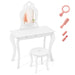 This vanity set is a perfect present for little girl. Rounded corners and anti-slip pads are just some of the ways that we made our vanity set safe for your kids. Designed with wall anchor strap, the table is not easy to tip over. The dresser also has a drawer to help store small items such as hair ties, brushes, makeup, nail polish and other fun trinkets. What's more, the stool can provide comfortable sitting experience for your little one.