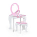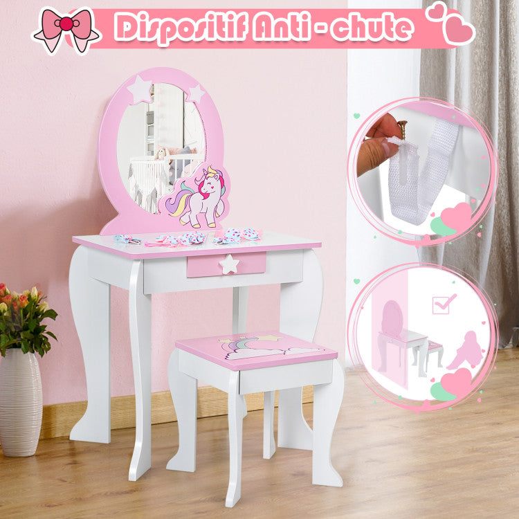 With the clear mirror, this kids vanity table and stool set with cute patterns is a fun and functional addition to your child's bedroom or play area.