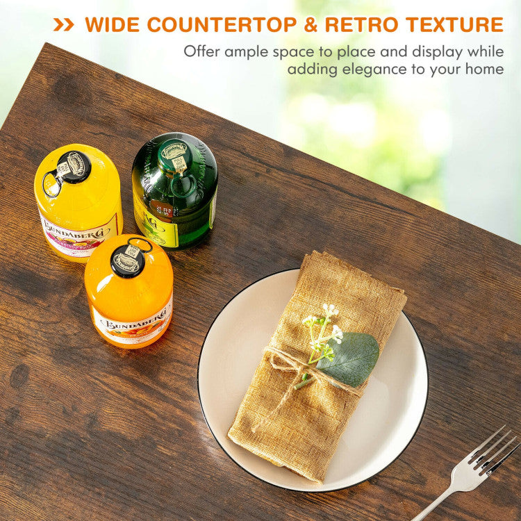 This kitchen cart features a large countertop to place food, which provides you with a free food prep space and allows you to transmit more food to another place. A wine rack for 5 bottles and 2 holders for 4 goblets offer perfect solution for your wine and glasses. The bottom shelf brings you extra storage options and the fence design keeps supplies inside safe when moving. You will feel smooth and easy to move the cart thanks to the universal casters. Also, you can stop it anywhere you like with the brakes. Take this nice bar cart home and you will enjoy an easier and more convenient kitchen life!